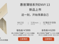 江苏分站 · 2017-07-28 09:35 - MX150独立显卡加持 惠普ENVY 13京东开启预约