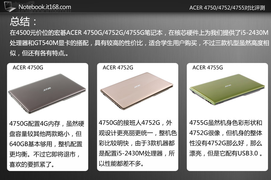 ACER 4750G/4752G/4755G全方位对比评测