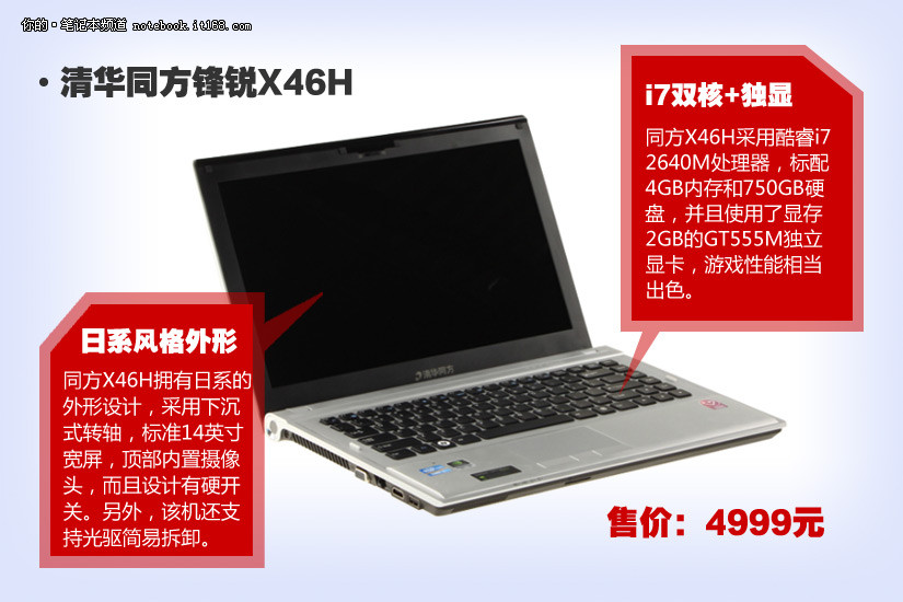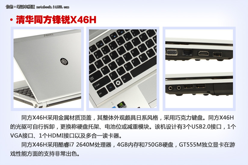 同方X46H采用酷睿i7 2640M处理器,4GB内存和750GB硬盘,GT555M独立显卡在游戏性能方面的支持非常出色。