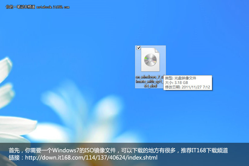 首先,你需要一个Windows7的ISO镜像文件,可以下载的地方有很多,推荐IT168下载频道