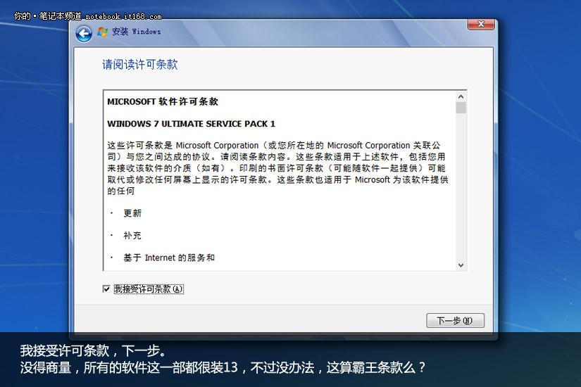 重启后进入正常WINDOWS7的安装步骤,一路点下一步完成WIN7的安装。