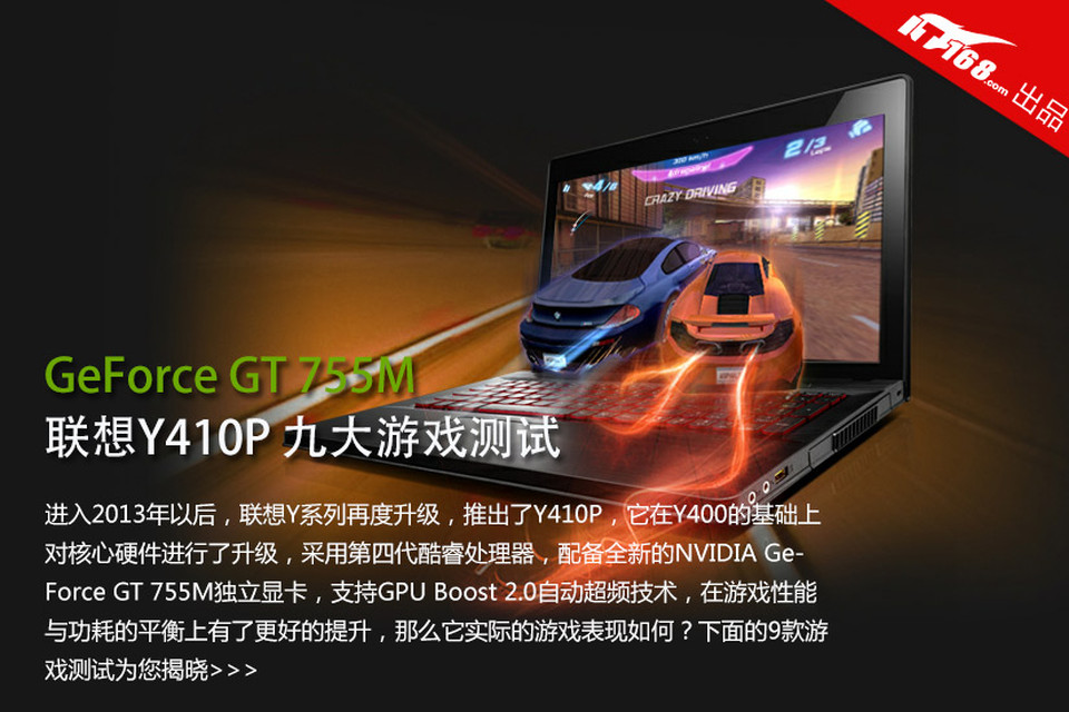 进入2013年以后,联想Y系列再度升级,推出了Y410P,它在Y400的基础上对核心硬件进行了升级,采用第四代酷睿处理器,配备全新的NVIDIA GeForce GT 755M独立显卡,支持GPU Boost 2.0自动超频技术,在游戏性能与功耗的平衡上有了更好的提升,那么它实际的游戏表现如何?下面的9款游戏测试为您揭晓>>>