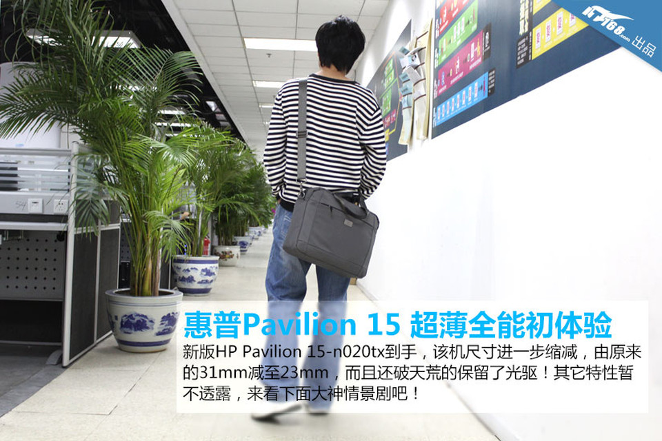 新版HP Pavilion 15-n020tx到手,该机尺寸进一步缩减,由原来的31mm减至23mm,而且还破天荒的保留了光驱!其它特性暂不透露,来看下面第九号编辑的情景剧吧!