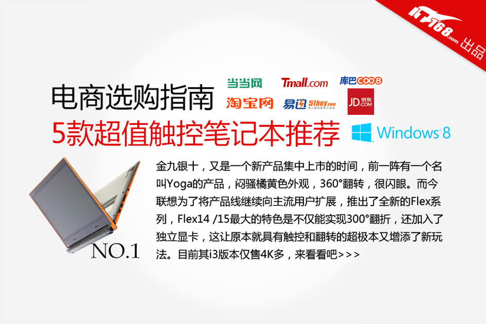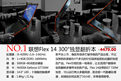 金九银十,又是一个新产品集中上市的时间,前一阵有一个名叫Yoga的产品,闷骚橘黄色外观,360°翻转,很闪眼。而今联想为了将产品线继续向主流用户扩展,推出了全新的Flex系列,Flex14 /15最大的特色是不仅能实现300°翻折,还加入了独立显卡,这让原本就具有触控和翻转的超极本又增添了新玩法。目前其i3版本仅售4K多,来看看吧>>>