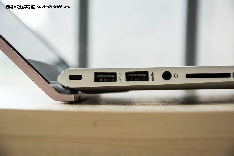 惠普畅游人Pavilion 14的扶梯式转轴设计让我觉得特别方便。笔记本放在腿上、桌面上时,转轴能够自动撑起机身底部,不但抬高了机身更利于散热,而且让键盘形成一定的倾斜角度,敲起字来也更舒服。笔记本的接口比我以前笨重的老笔记本丰富许多,笔记本左侧拥有两个USB 3.0接口、耳机、麦克风二合一接口和多合一读卡器插槽,右边有USB 3.1 Type-C接口、HDMI接口、RJ45网线接口。