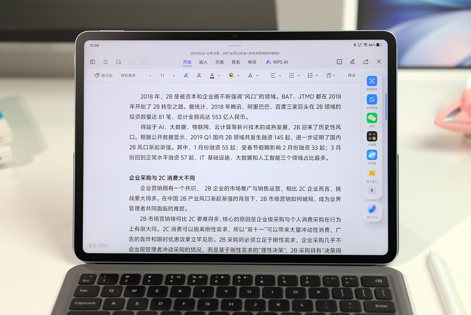 在多任务处理场景下,vivo Pad5e 也展现出了出色的能力。同时打开多个网页、PC 级 WPS、CAJViewer 文献阅读器等应用,切换界面时依旧流畅顺滑,不会出现延迟或卡顿现象。