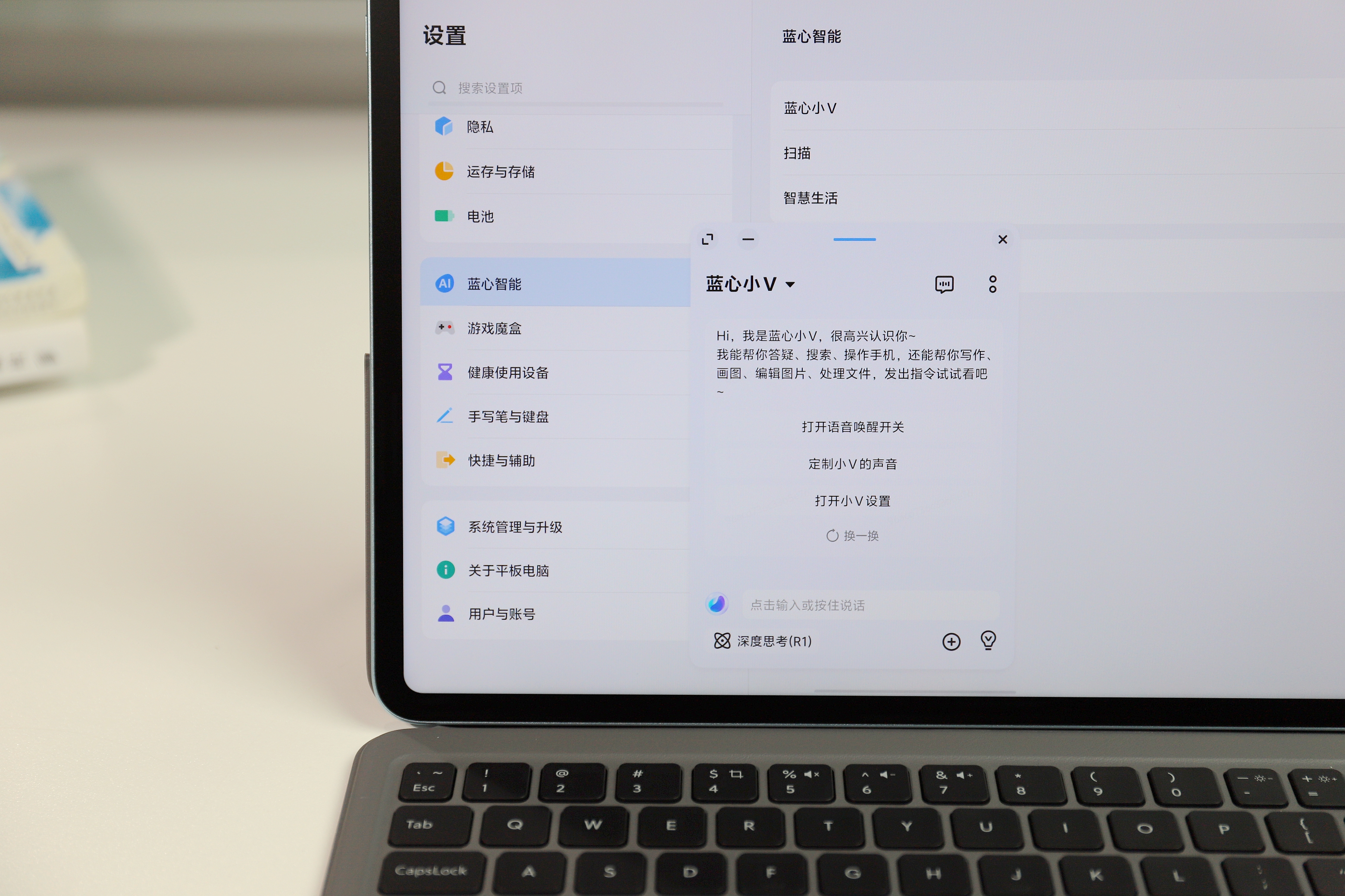 内置的系统级蓝心大模型,深度接入 DeepSeek-R1,为用户提供全场景智慧生产力支持。AI 创作功能能帮助用户快速生成文案、报告等内容;会议助手可实时记录会议内容,并进行整理和总结;全局圈搜功能,遇到不懂的知识点或专业术语,长按即可快速搜索相关信息;AiPPT 助手则能根据用户输入的主题,自动生成 PPT 框架和内容,大大节省了制作 PPT 的时间。配合智能三件套和 OriginOS HD,vivo Pad5e 成为了一款功能强大的移动学研工具,助力年轻人高效学习与创作。